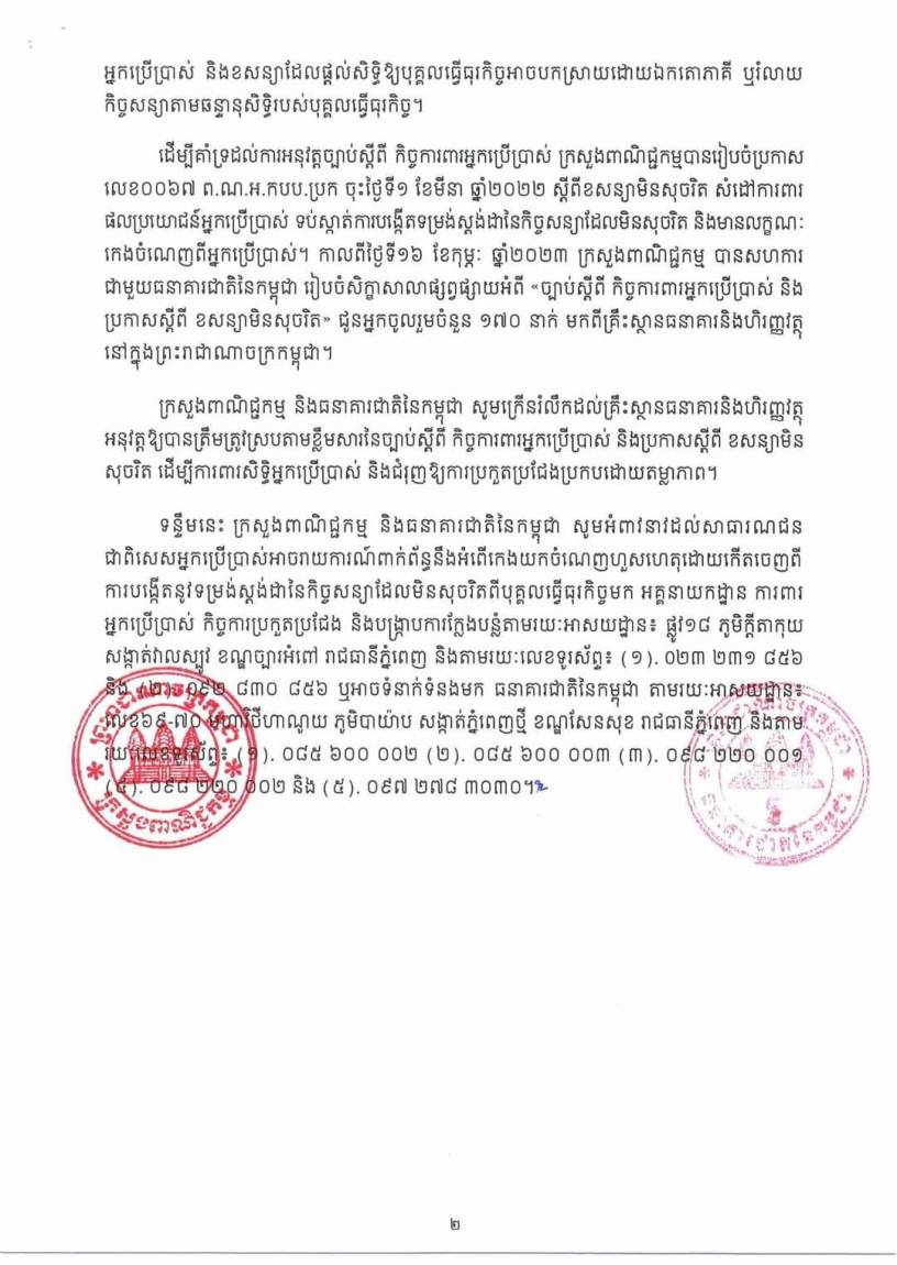 Business ប្រកាសស្តីពីខសន្យាមិនសុចរិត Date: March 30, 2023Author: A Part your Business Journey 0 Comments Share this: Click to share on X (Opens in new window) X Click to share on Facebook (Opens in new window) Facebook Like Loading... Related